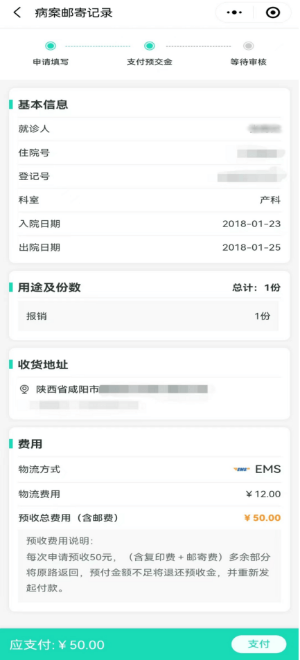 病案科審核成功后當(dāng)日可發(fā)快遞