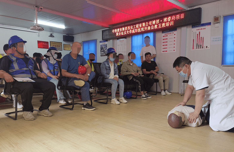 為進(jìn)一步提高建筑工人的安全防范意識(shí),化解突發(fā)重大風(fēng)險(xiǎn),將意外傷害最小化,2023年6月20日,延安大學(xué)咸陽(yáng)醫(yī)院急診醫(yī)學(xué)科醫(yī)護(hù)團(tuán)隊(duì)走進(jìn)中國(guó)中鐵建設(shè)西安工程有限公司博領(lǐng)---博睿府項(xiàng)目部,為全體工友帶來(lái)一場(chǎng)以“救在身邊”為主題的健康教育活動(dòng),此次健康教育活動(dòng)旨在豐富工人急救知識(shí)的儲(chǔ)備,提升危急時(shí)刻的應(yīng)急能力。