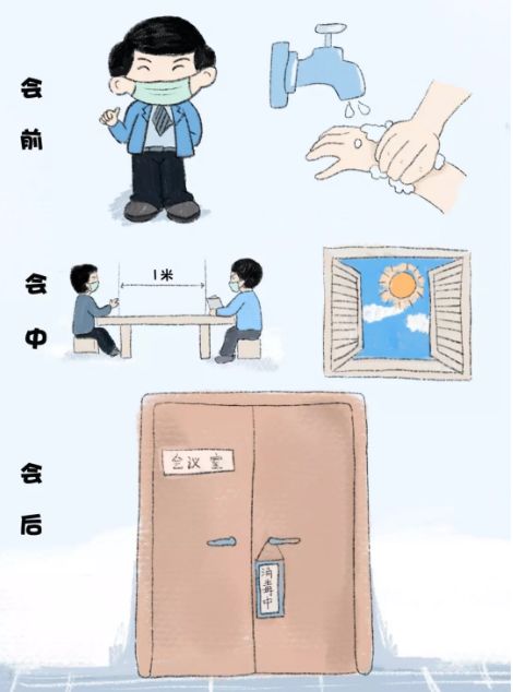 建議佩戴口罩,進(jìn)入會(huì)議室前洗手消毒。開會(huì)人員間隔1米以上。減少集中開會(huì),控制會(huì)議時(shí)間,會(huì)議時(shí)間過(guò)長(zhǎng)時(shí),開窗通風(fēng)1次。會(huì)議結(jié)束后場(chǎng)地、家具須進(jìn)行消毒。茶具用品建議開水浸泡消毒。