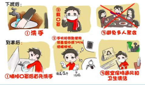 洗手后佩戴一次性醫(yī)用口罩外出,回到家中摘掉口罩后首先洗手消毒。手機(jī)和鑰匙使用消毒濕巾或75%酒精擦拭。居室保持通風(fēng)和衛(wèi)生清潔,避免多人聚會(huì)。