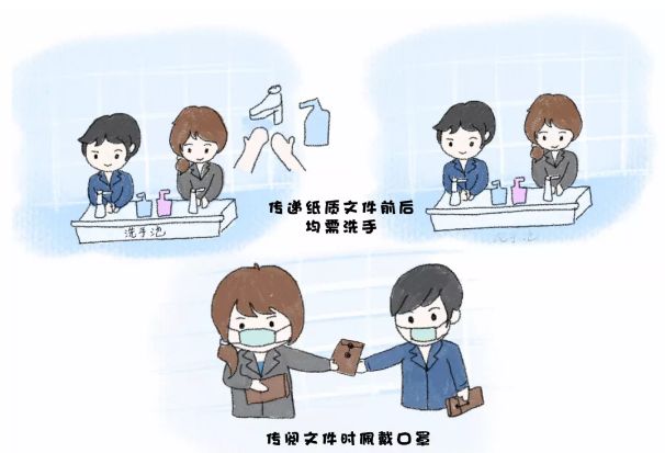 傳遞紙質(zhì)文件前后均需洗手,傳閱文件時(shí)佩戴口罩。