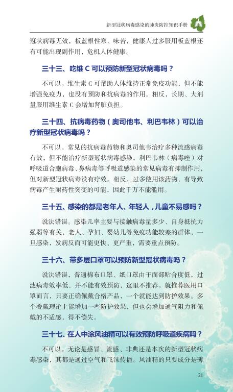 新型冠狀病毒感染的肺炎防控知識手冊