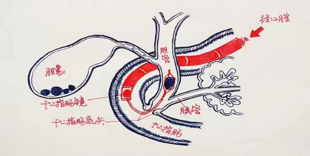 膽總管結(jié)石有另一種治療方法,經(jīng)胃十二指腸鏡找到膽管進(jìn)入腸道的開口,逆行插管,將膽管內(nèi)的結(jié)石取出。因為無需切開膽總管,也不用留置引流,是一種較好的微創(chuàng)治療方式。我們建議膽囊結(jié)石合并膽管結(jié)石的患者可分兩步走,先行ERCP取出膽管結(jié)石,再行腹腔鏡膽囊切除,達(dá)到最小的創(chuàng)傷和最快的恢復(fù)。但相對費用較高,而且ERCP并不能保證100%成功,但是對于膽總管結(jié)石仍然是首選治療方案。我科自2017年開始開展ERCP這項技術(shù),術(shù)中行ERCP+EST+ENBD術(shù),至今已完成200余例,絕大多數(shù)患者術(shù)后恢復(fù)順利,但也有個別患者術(shù)后并發(fā)急性胰腺炎,經(jīng)積極治療后,恢復(fù)順利,遠(yuǎn)期無明顯并發(fā)癥。