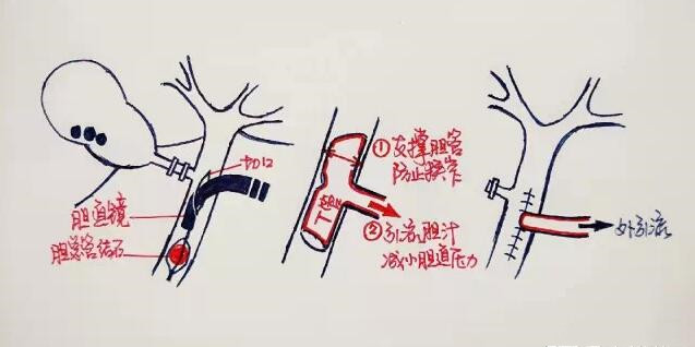 因為膽管是肝臟分泌的膽汁進(jìn)入腸道的唯一通路,所以膽管結(jié)石無法像膽囊結(jié)石那樣可以簡單切除。當(dāng)膽管切開取石再縫合后,愈合的時候因為切口收縮可能會造成膽道狹窄,所以常規(guī)在膽管內(nèi)留置一根T形管,防止狹窄和膽漏。目前T管一般要留置1-2月,造影沒有狹窄或結(jié)石殘留后方可拔除。