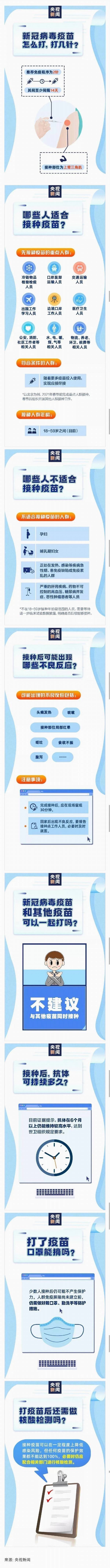 近日,我國首批新冠病毒疫苗開始對重點人群進行接種。疫苗需要打幾針?適用于哪些人群?打完后能不能摘口罩?出現(xiàn)不良反應怎么辦?今天,通過一組圖,一起了解↓↓↓