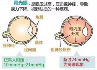 1.1眼壓是眼球內(nèi)部壓力的簡稱。青光眼發(fā)病,和眼球內(nèi)壓力異常有關(guān)。正常情況下,眼球有一定量的“水”填充支撐,就像一個(gè)水池,青光眼病人因?yàn)椤跋滤馈倍伦×?,里面的“水”排不出去,就?huì)導(dǎo)致眼球壓力升高,感覺眼睛酸脹、頭痛。持續(xù)的高眼壓會(huì)“壓壞視神經(jīng)”,造成無法恢復(fù)的視力下降,甚至失明。