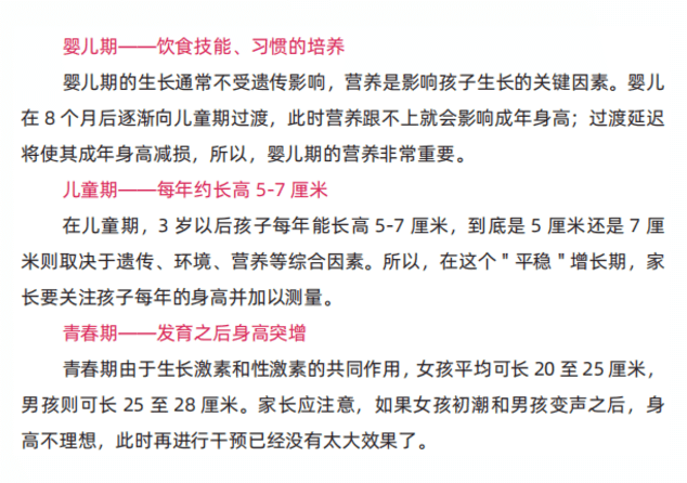 據(jù)統(tǒng)計,87%的家長沒有監(jiān)測孩子身高的習(xí)慣,不能及時發(fā)現(xiàn)孩子身高的異常;只有20%的家長經(jīng)常過問孩子身高并進行監(jiān)測和記錄;當3歲以上孩子出現(xiàn)每年身高增長不到5厘米,比周圍同齡的孩子矮半個頭、總是坐在教室第一排的時候,90%的家長選擇盲目等待,或者堅信孩子晚長,而錯過了最佳的干預(yù)時期。那么讓我們來看一下孩子不同時期的發(fā)育情況吧!