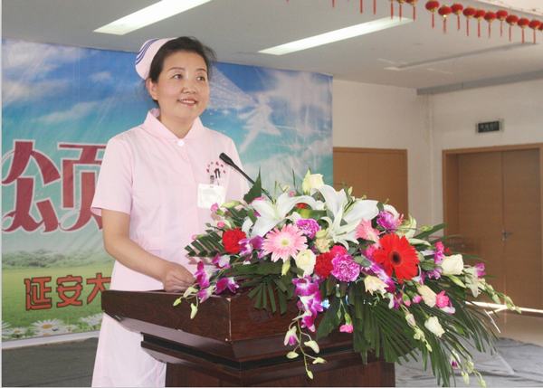 首先護(hù)理部徐京華主任致辭,表達(dá)了對廣大護(hù)士節(jié)日的祝福,希望通過表彰、獎(jiǎng)勵(lì)先進(jìn),激勵(lì)和帶動全院護(hù)理人員學(xué)習(xí)先進(jìn)、趕超先進(jìn)和全心全意為患者服務(wù)的工作熱情,促進(jìn)護(hù)理工作再上新臺階。對護(hù)理工作做一階段總結(jié),在踐行“優(yōu)質(zhì)護(hù)理服務(wù)示范工程”活動過程中,在醫(yī)院領(lǐng)導(dǎo)的大力支持下,圍繞今年工作重點(diǎn),全院護(hù)士積極努力,采取有效措施使得我院優(yōu)質(zhì)護(hù)理服務(wù)工作得以穩(wěn)步發(fā)展,全院臨床科室全部開展,今年新開病區(qū)也已遞交申請書和開展計(jì)劃方案。以病人為中心,深化專業(yè)內(nèi)涵,責(zé)任護(hù)士全面負(fù)責(zé),使病人感受到“這里的每名護(hù)士都關(guān)心您”。去年至今,病人點(diǎn)名表揚(yáng)護(hù)士500余人,最多被點(diǎn)名表揚(yáng)18次,收到表揚(yáng)信330封。近幾年我院護(hù)理工作成績斐然,2次被評為陜西省優(yōu)質(zhì)護(hù)理示范工程“先進(jìn)集體”榮譽(yù)稱號;每年被評為咸陽市先進(jìn)集體;今年我院又被評為咸陽市“2014年度優(yōu)質(zhì)護(hù)理服務(wù)先進(jìn)單位”;心血管內(nèi)五科病區(qū)被評為咸陽市“2014年度優(yōu)質(zhì)護(hù)理服務(wù)先進(jìn)病區(qū)”;邢娟護(hù)士長、周莉護(hù)士被評為咸陽市“2014年度優(yōu)質(zhì)護(hù)理服務(wù)優(yōu)秀護(hù)士”。