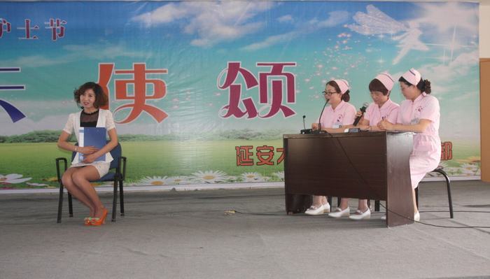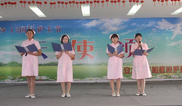 慶祝節(jié)目精彩紛呈,心臟系統(tǒng)的表演劇《我是一名護(hù)士》,從護(hù)士職業(yè)禮儀的站、坐、行、蹲、推治療車、持病歷夾等方面進(jìn)行了護(hù)士禮儀展示,在優(yōu)美的背景音樂襯托下,莊重而優(yōu)雅,標(biāo)準(zhǔn)而婀娜的禮儀展示,如一場美妙的音樂劇,贏得了觀眾的陣陣掌聲。秦腔表演《十五貫》片段,展示了我們護(hù)理人的多才多藝,其哥哥的板胡伴奏更為節(jié)目錦上添花。腦血管病系統(tǒng)帶來了舞蹈《印度風(fēng)情》,病房里,白衣天使展現(xiàn)的是她們輕巧嫻熟的技術(shù),而舞臺上的她們舞姿輕盈優(yōu)美,臺下掌聲和歡呼聲此起彼伏。隨后在磅礴的音樂伴奏下,四位護(hù)士緩緩走上舞臺,此刻的她們美麗、純潔、高貴、神圣,燕尾帽下的張張笑臉為我們譜寫了大愛無疆的《天使頌》。女聲獨(dú)唱將《那片?!分袌?zhí)著的情感演繹的淋漓盡致。外科系統(tǒng)精心準(zhǔn)備了三句半《護(hù)士真善美》,你看,她們敲鑼打鼓、氣勢驕人,卻用簡捷、詼諧的語言,將外科各科職業(yè)的辛酸和快樂表達(dá)的活靈活現(xiàn),時(shí)而感人至深,時(shí)而令人捧腹大笑。內(nèi)科系統(tǒng)演繹的小品《招聘新時(shí)代》,將大會推向了高潮,演員們精神飽滿、配合默契、詼諧幽默,將招聘時(shí)的各種狀況表演的惟妙惟肖,贏得觀眾的頻頻尖叫聲和喝彩聲,讓人不禁聯(lián)想起了自己當(dāng)年應(yīng)聘的情景。外科系統(tǒng)、內(nèi)科系統(tǒng)的娛樂節(jié)目:《快樂傳真》和《蘿卜蹲》更是讓整個(gè)會場充滿了開懷的笑聲,成了歡樂的海洋。