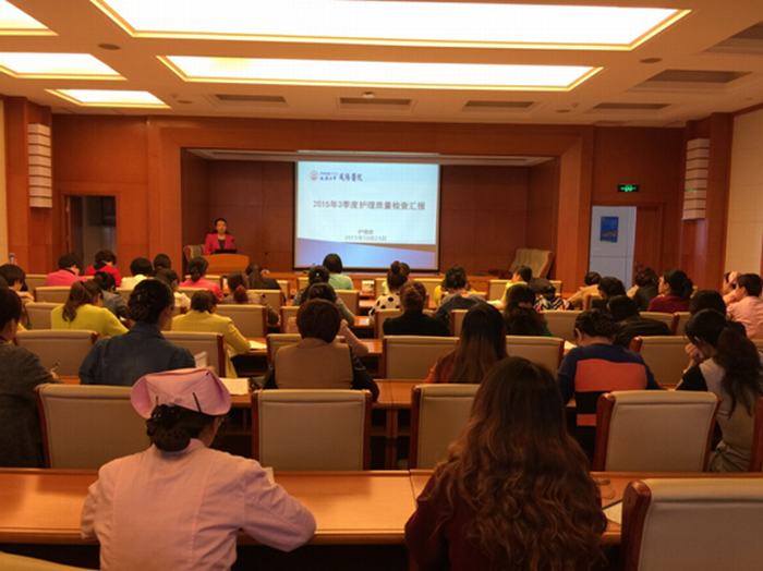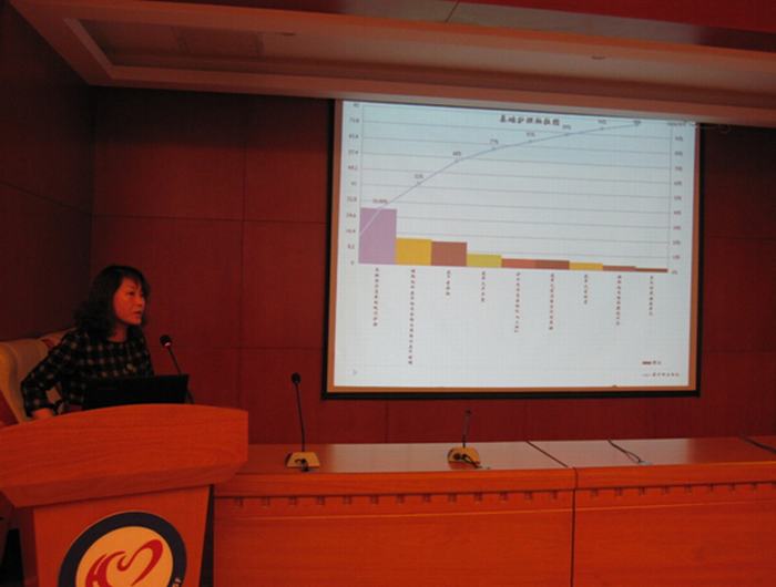 護理質量持續(xù)改進,首先要明白影響質量的因素,抓住首要問題。充分利用管理工具,從三季度開始,改變護理質量反饋形式。護理部徐京華主任鼓勵大家運用質量工具進行護理質量結果分析,要求各管理委員會將護理質量檢查結果運用柏拉圖等管理工具進行分析,以PPT形式進行匯報。2015年10月23日下午,在心臟病院二十樓第一學術廳進行三季度護理質量檢查結果匯報。護理質量管理委員會全體成員參加。各質檢組長將本組檢查存在問題做成柏拉圖,展示存在問題的頻次、所占比例,分析影響質量80%的那幾個問題,將柏拉圖運用于護理質量分析中,強調用數據說話。