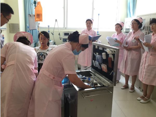 此次演練是為檢驗我院護理管理體系的應急指揮協(xié)調(diào)能力、護理人員急危重癥護理綜合能力、急救儀器設備性能狀態(tài)。演練過程按既定方案進行,模擬心臟急診/胸痛中心在短時間內(nèi)接診2名急危重癥患者,造成護理人員緊缺,急需調(diào)配人員支援。 一陣緊促的電話鈴聲響起,急診科的護士送一位急性左心功能衰竭患者至搶救室,在醫(yī)生護士的緊密合作下,深大急促的呼吸漸趨平穩(wěn)、慌亂的心跳逐漸恢復中。突然出現(xiàn)一陣恐慌聲“醫(yī)生、護士,有人昏倒在走廊”,在心臟急診/胸痛中心人員緊張情況下,李靜護士長即刻組織科室人員對走廊昏迷患者進行搶救,并立即打電話通知護理部調(diào)派人員參與搶救。3分鐘后,增派人員達到,共同對患者進行搶救。經(jīng)過積極的搶救,患者復蘇成功,繼續(xù)給予高級生命支持,并通知家屬。所有護士長、護理骨干、輪轉護士等八十余人,在現(xiàn)場觀摩了“事件報告、啟動方案、現(xiàn)場搶救、患者疏散、三人搬運法、復蘇后的后續(xù)工作”等重要環(huán)節(jié),清晰、全面了解了突發(fā)事件發(fā)生時護理人力資源調(diào)配流程。