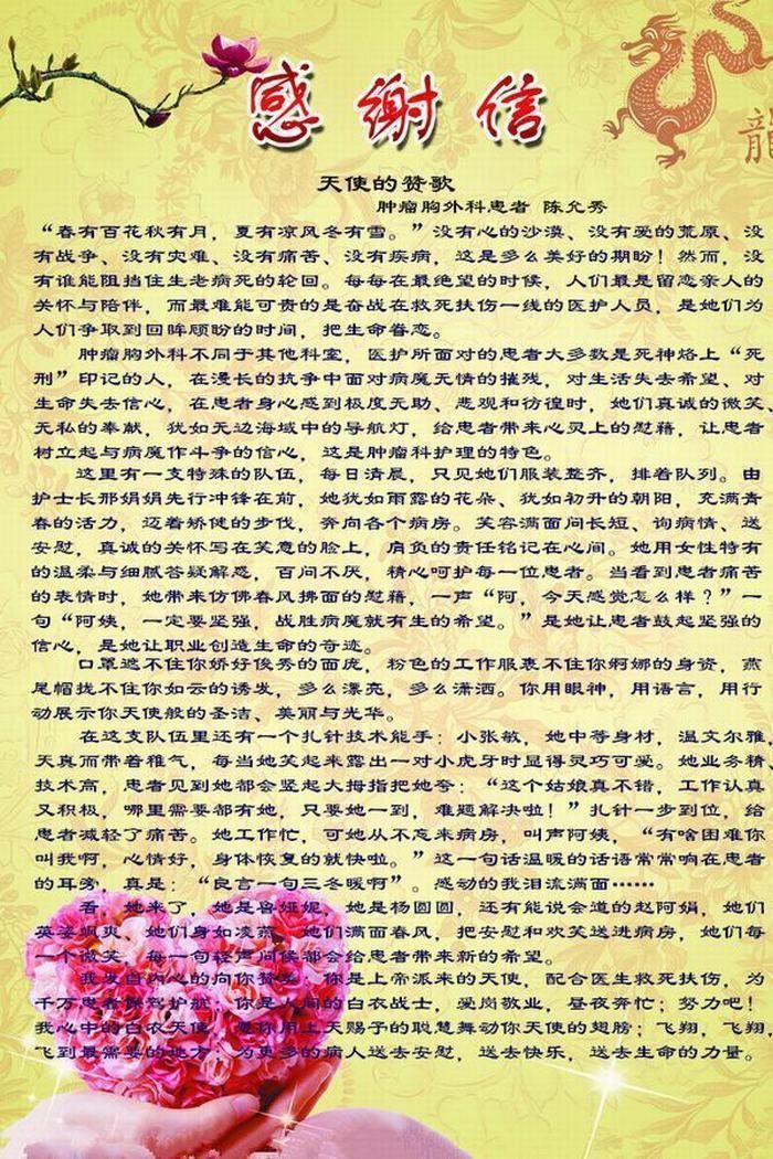 腫瘤胸外科一位患者的感謝信——天使的贊歌