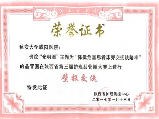 新年伊始,臘梅初開。1月13日由陜西省質(zhì)控中心舉辦的 “2016年陜西省護(hù)理質(zhì)控管理培訓(xùn)班暨第三屆品管圈展示會(huì)”在小寨軍區(qū)招待所會(huì)議廳舉行。本次參加展示交流的40個(gè)品管圈,是從陜西省各地市164個(gè)品管圈中脫穎而出的,其中20個(gè)圈在本次大會(huì)進(jìn)行展示并進(jìn)行評(píng)選,20個(gè)圈以壁報(bào)形式展示,我院NICU“光明圈”主題:降低患者床頭交接缺陷率參加本次壁報(bào)展出。是咸陽(yáng)市進(jìn)入成果展示的兩家醫(yī)院之一。