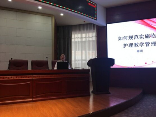 護(hù)理部黨文婷總護(hù)士長、教學(xué)干事奉明主管護(hù)師、神經(jīng)內(nèi)科十二病區(qū)羅建利護(hù)士長、中醫(yī)科董朝妮護(hù)士長擔(dān)任帶教老師,進(jìn)行授課。結(jié)合我院目前的教學(xué)現(xiàn)狀及2017年護(hù)理部教學(xué)目標(biāo)和指標(biāo),分別對護(hù)理教學(xué)相關(guān)管理制度及帶教質(zhì)量檢查標(biāo)準(zhǔn)、帶教老師應(yīng)具備的素質(zhì)及要求、臨床護(hù)理教學(xué)風(fēng)險(xiǎn)管理、如何規(guī)范實(shí)施臨床護(hù)理教學(xué)管理做了詳細(xì)的闡述和講解。