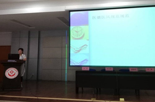 黨文婷總護(hù)士長就《實(shí)習(xí)生管理規(guī)定及相關(guān)護(hù)理核心制度》分別從法律法規(guī)、我院護(hù)理核心制度、實(shí)習(xí)生要求及規(guī)范、請(qǐng)假管理規(guī)定等方面進(jìn)行講解,要求同學(xué)們嚴(yán)格執(zhí)行護(hù)理核心制度,認(rèn)真遵守醫(yī)院相關(guān)規(guī)定;護(hù)理部奉明老師從《護(hù)士執(zhí)業(yè)禮儀與醫(yī)德醫(yī)風(fēng)規(guī)范》中教會(huì)大家如何成為一名講文明、懂禮貌、有內(nèi)涵、高素質(zhì)的優(yōu)秀護(hù)士;羅建利護(hù)士長針對(duì)《護(hù)患溝通技巧》闡述了護(hù)患溝通的方法、技巧、時(shí)機(jī),指導(dǎo)大家在今后的臨床工作中如何實(shí)施有效的護(hù)患溝通;董朝妮護(hù)士長對(duì)于《如何更好的進(jìn)行臨床護(hù)理實(shí)習(xí)》結(jié)合自身工作學(xué)習(xí)經(jīng)驗(yàn),教會(huì)大家在有限的時(shí)間內(nèi)學(xué)到更多的知識(shí),為今后走上護(hù)理崗位奠定基礎(chǔ);劉敏護(hù)士長從《護(hù)理工作安全隱患》中圍繞患者十大安全目標(biāo),重點(diǎn)對(duì)護(hù)理實(shí)習(xí)生在實(shí)習(xí)過程中易出現(xiàn)的問題、防范措施等方面進(jìn)行講解。