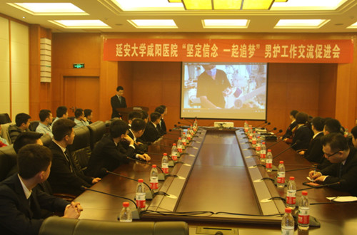 2019年2月26日下午15:00延安大學咸陽醫(yī)院護理文化建設(shè)委員會男護士工作小組舉辦“堅定信念,一起追夢”工作交流促進會,在心血管病院20樓第二學術(shù)廳順利召開。延安大學咸陽醫(yī)院徐京華副院長、護理部楊敏主任、陜西省護理學會男護士專業(yè)委員會常務(wù)委員黨文婷總護士長出席會議,院內(nèi)全體在職男護士、男護實習生以及咸陽職業(yè)技術(shù)學院在讀男護生,共計30余人參加此次會議,會議由陜西省護理學會男護士專業(yè)委員會青年副組長、我院精神科護士長徐金強主持。