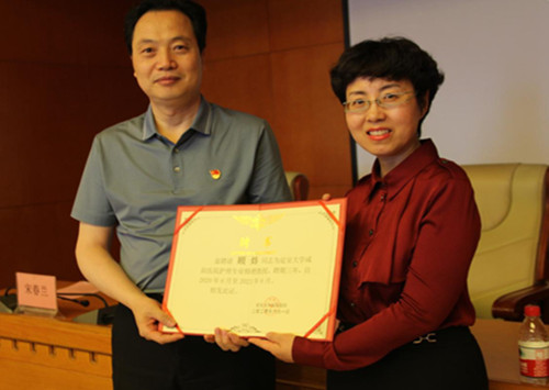 【張海濤院長(zhǎng)為顧煒教授頒發(fā)聘書】