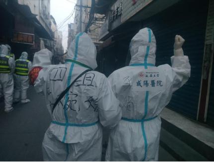 日子久了,我們跟王阿姨慢慢熟稔起來,工作配合也越來越默契,無論是分發(fā)物資還是入戶采樣,都會高效完成。她也從來不吝嗇向我們表達喜愛之情?!澳輧?,我最喜歡你們延大咸陽醫(yī)院的孩子們啦!不但工作效率高,也從來沒聽見你們?nèi)魏稳私锌嘟欣邸?,“妮兒,阿姨沒去過咸陽,你們醫(yī)院到底在哪兒?。块L什么樣兒???”“妮兒,等疫情過去了,你一定要帶著大家再來潘家莊轉(zhuǎn)轉(zhuǎn),阿姨給你們包餃子!”她依然快人快語,但我們卻被她的真誠與善良感動著。
