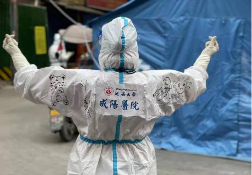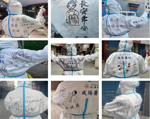 “我的防護服上是一個唐代美女,配文‘長安常安’,這是我對西安最真摯的祝福?!痹阏嬲\的表達(dá)著她的心愿。