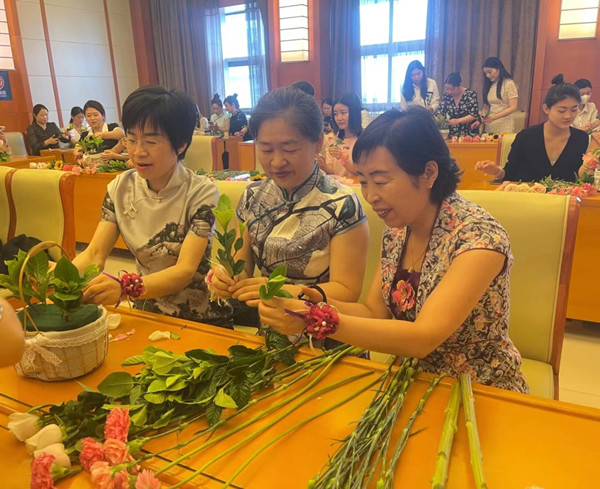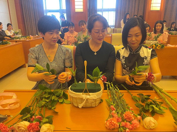 嬌艷的玫瑰、如火的康乃馨、淡雅恬靜的勿忘我、潔白的百合頗有藝術(shù)地插在花籃里,有的千姿百態(tài)、有的古典高雅、有的雍容華貴、有的溫文爾雅、有的小家碧玉…一個個漂亮的小花籃就這樣誕生了!作品完成后花藝老師對每組的作品進行逐一點評并評選出優(yōu)秀作品。“插花師”們把最美好的祝福,送給在場備受尊重的老師們,寓意“美麗花籃送祝福,愿美好生活與您永相伴”