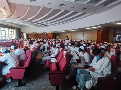 為做好實(shí)習(xí)生規(guī)范化管理,提高其基本專業(yè)素養(yǎng)和服務(wù)意識(shí),保障護(hù)生實(shí)習(xí)期間的醫(yī)療安全,2022年7月18-19日,延安大學(xué)咸陽(yáng)醫(yī)院護(hù)理教學(xué)管理委員會(huì)在腦血管病院第三學(xué)術(shù)廳舉行了“2022-2023年度護(hù)理實(shí)習(xí)生崗前培訓(xùn)”。護(hù)理部楊敏主任、教學(xué)管理委員會(huì)主任委員黨文婷總護(hù)士長(zhǎng)、醫(yī)院感染控制辦公室干事王佳及教學(xué)管理委員會(huì)部分委員出席了開(kāi)幕式,現(xiàn)場(chǎng)共計(jì)200名護(hù)理實(shí)習(xí)生參加培訓(xùn)。