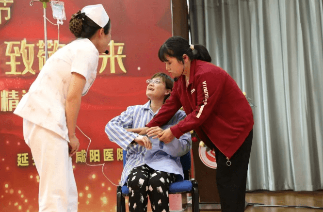 肩有擔(dān)當(dāng),心有選擇。不同護(hù)理專業(yè)的服裝表演,將護(hù)士職業(yè)禮儀融入其中,展示延安大學(xué)咸陽(yáng)醫(yī)院不同崗位上的護(hù)士職業(yè)風(fēng)采。
