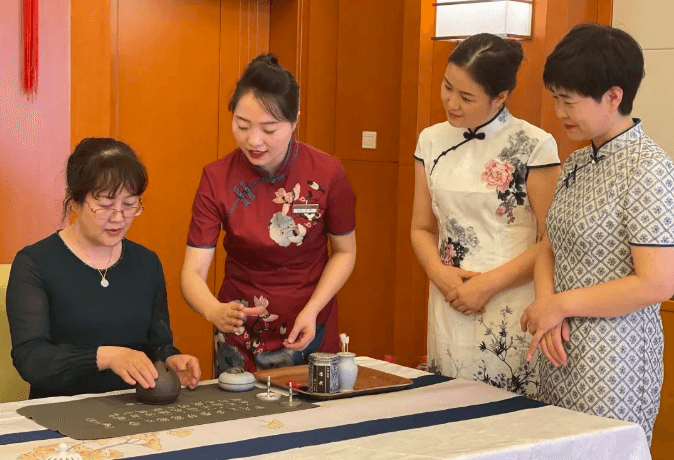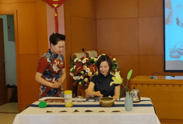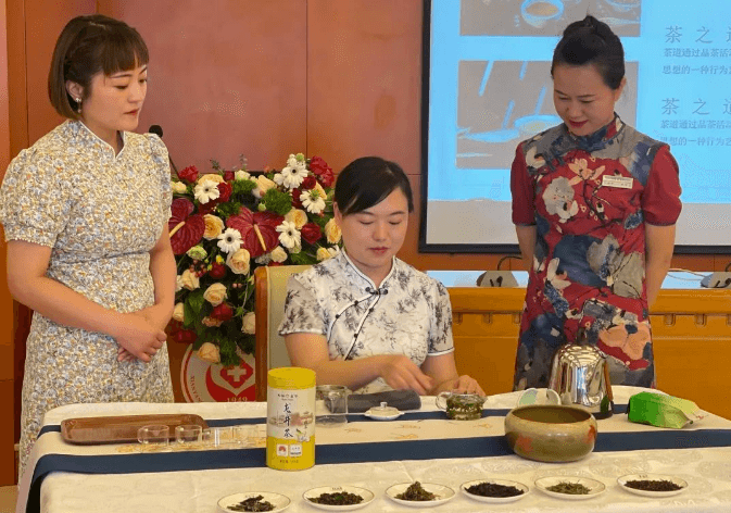 接著兩名茶藝師進(jìn)行了茶藝基本流程的教授,潤杯、置茶、潤茶、試香、沖泡、奉茶、聞香、品茗,茶香中演繹著茶道之美。茶藝師為大家斟上了春季茶飲,一時(shí)間,茶香滿室,沁人心脾,讓我們感受到傳統(tǒng)茶道的獨(dú)特魅力。大家專注聆聽、仔細(xì)觀察,是學(xué)習(xí)、是放松更是享受,欣賞完老師行云流水的演示,大家在茶藝師的指導(dǎo)下躍躍欲試,舉手投足之間散發(fā)著從容平和,在一泡一品一奉中,靜心凝神,修德習(xí)禮。大家共同舉杯,慢飲細(xì)酌,分享自己的茶藝心得,放松心靈,享受這份午后的悠然。放松身心陶冶情操,收獲了一份獨(dú)屬于自己的快樂與嫻靜。