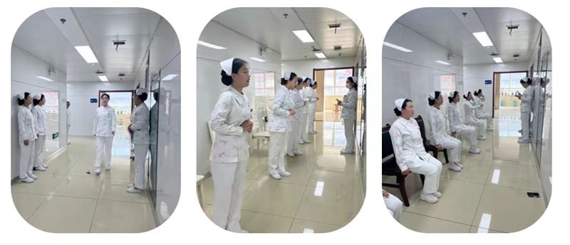 在自學(xué)階段,護理文化建設(shè)委員會將本院錄制的“護士標準職業(yè)禮儀與行為規(guī)范”視頻教材上傳至百度網(wǎng)盤,推送觀看鏈接至培訓(xùn)學(xué)員群,要求護理文化聯(lián)絡(luò)員和禮儀教員督導(dǎo)新入職及規(guī)培護士觀看視頻,自學(xué)護士標準職業(yè)禮儀和行為規(guī)范內(nèi)容,并在自學(xué)過程中通過現(xiàn)場一對一的方式指導(dǎo)練習(xí)護理職業(yè)禮儀基本動作要領(lǐng),為后期現(xiàn)場集中培訓(xùn)打下了良好的基礎(chǔ)。