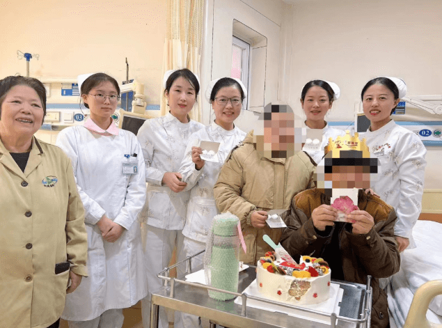 當(dāng)日早晨,醫(yī)務(wù)人員將提前為老壽星準(zhǔn)備好的生日蛋糕和手寫(xiě)的心愿卡片推到老人面前,并祝愿他福如東海、壽比南山!慶祝過(guò)后把蛋糕分發(fā)給病區(qū)的患者,讓大家一起分享這份喜悅,熱鬧的祝壽氛圍、暖暖的生日歌曲、濃濃的關(guān)懷之情,讓整個(gè)病區(qū)充滿愛(ài)的溫度。