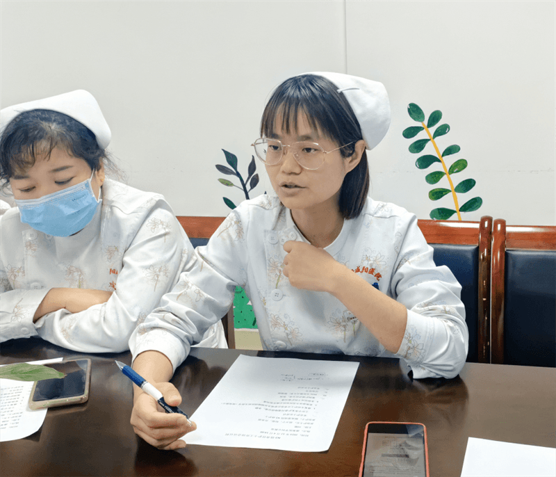 分享結(jié)束,在劉敏護(hù)士長(zhǎng)的引導(dǎo)下,大家就臨床上常見(jiàn)的危重患者管理、飲食管理、風(fēng)險(xiǎn)評(píng)估、溝通不暢等問(wèn)題進(jìn)行了激烈的討論,大家各抒己見(jiàn),暢所欲言,從患者角度、護(hù)士角度及醫(yī)院角度去探討原因,提出預(yù)防及改進(jìn)措施。