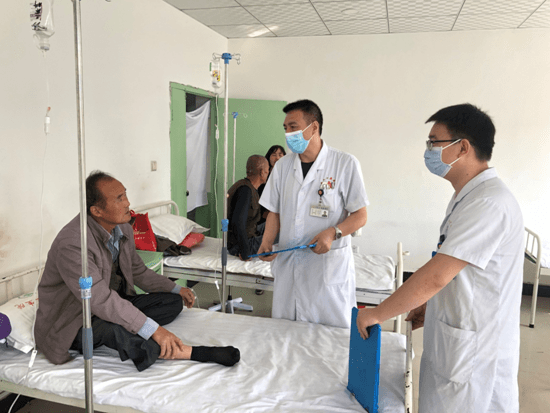 心血管內(nèi)科七病區(qū)高勝利主任為患者聽診