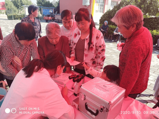 在陽峪村中心廣場(chǎng),廣大群眾慕名前來,村民們一大早就趕來等候醫(yī)生檢查。義診團(tuán)隊(duì)攜帶聽診器、血壓計(jì)、裂隙燈檢查儀等醫(yī)療設(shè)備為群眾進(jìn)行診斷,現(xiàn)場(chǎng)進(jìn)行慢性病登記,并為群眾免費(fèi)發(fā)放洗臉盆、手提袋、醫(yī)療保健書籍、常用藥物等。在衛(wèi)生院的大力支持和幫助下,活動(dòng)開展的井然有序。義診現(xiàn)場(chǎng),我院專家們熱情為群眾診斷開方,耐心回答他們的咨詢。