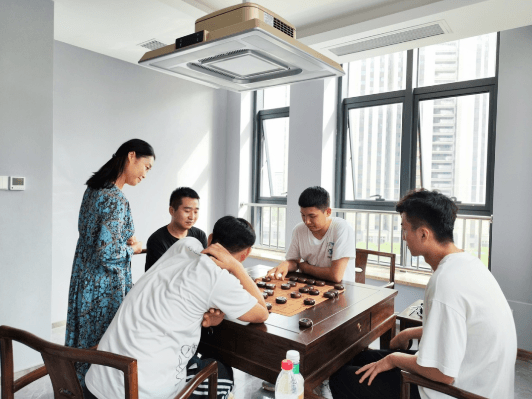 象棋比賽的參賽選手們面對棋盤,沉著應(yīng)對。他們在棋盤上布局,出棋無聲,落棋不悔。一時間,棋盤上楚漢相爭,車來炮往,“殺”得難解難分。賽場下,棋類愛好者互相交流,討教棋藝經(jīng)驗,聊得不亦樂乎。