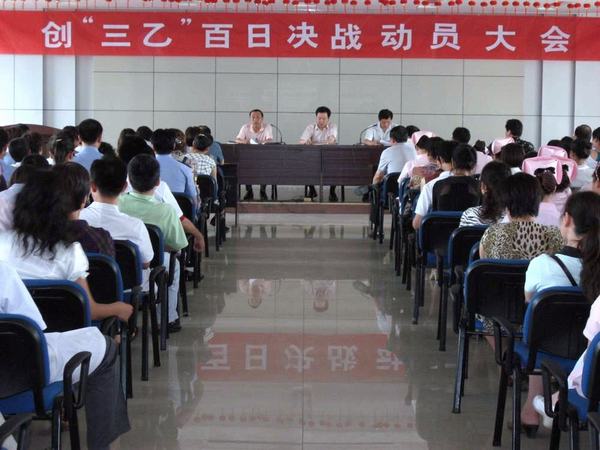 2009年6月29日下午,醫(yī)院召開全院“創(chuàng)三乙”百日決戰(zhàn)動(dòng)員大會(huì),李軒書記主持,張群董事長(zhǎng)參加會(huì)議并講話,李衛(wèi)軍院長(zhǎng)作動(dòng)員講話。隨后,鞏曉英、葛世啟、楊敏分別代表臨床科室主任、醫(yī)技科室主任和護(hù)士長(zhǎng)做了表態(tài)發(fā)言,一致表示,聽了李院長(zhǎng)的動(dòng)員講話,深受鼓舞,深感時(shí)間緊迫,任務(wù)重大,但有信息、有決心在院黨委、院領(lǐng)導(dǎo)的帶領(lǐng)下,加倍努力工作,爭(zhēng)時(shí)間、搶速度,以科學(xué)的態(tài)度,嚴(yán)謹(jǐn)?shù)淖黠L(fēng),背水一戰(zhàn),確保三級(jí)醫(yī)院評(píng)審?fù)ㄟ^,為人民群眾提供優(yōu)質(zhì)、高效、安全、便捷、經(jīng)濟(jì)的醫(yī)療服務(wù)做出最大努力。