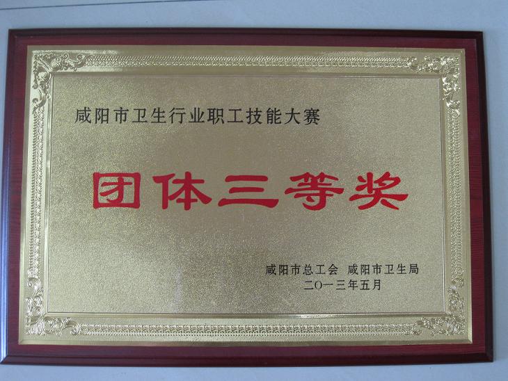 咸陽市總工會、咸陽市局衛(wèi)生舉辦的全市衛(wèi)生行業(yè)職工技能大賽“團(tuán)體三等獎”