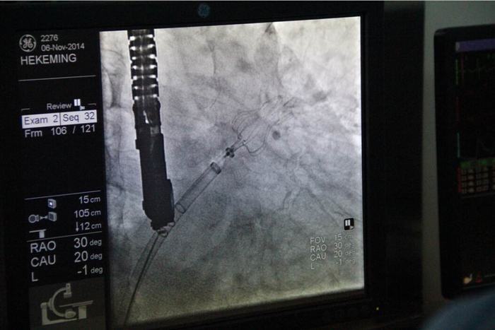2014年11月6日在我院董事會(huì)、院領(lǐng)導(dǎo)及心血管病醫(yī)院各級(jí)領(lǐng)導(dǎo)的大力支持下,由德籍華人李教授及兩名美國(guó)專家的協(xié)助,心血管病醫(yī)院張玉順院長(zhǎng)親自手術(shù),在心臟導(dǎo)管室、外科手術(shù)室及B超室醫(yī)護(hù)人員的全力配合下,經(jīng)過(guò)一小時(shí)緊張而有序的工作,順利完成了西北地區(qū)首例“左心耳封堵術(shù)”。此手術(shù)創(chuàng)傷小,痛苦少,恢復(fù)快,預(yù)后好。為目前根治房顫導(dǎo)致中風(fēng)最先進(jìn)及可靠的方法,避免了長(zhǎng)期服藥的副作用,減輕了患者的經(jīng)濟(jì)負(fù)擔(dān)。該項(xiàng)技術(shù)國(guó)際領(lǐng)先,國(guó)內(nèi)剛剛引進(jìn)。此手術(shù)的順利開展預(yù)示著我院醫(yī)療診治及介入手術(shù)水平已跨入國(guó)內(nèi)先進(jìn)行列,與國(guó)際接軌,填補(bǔ)了西北地區(qū)空白,為廣大患者帶來(lái)福音。
