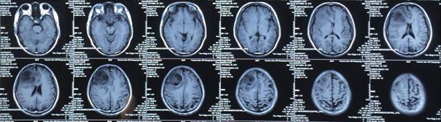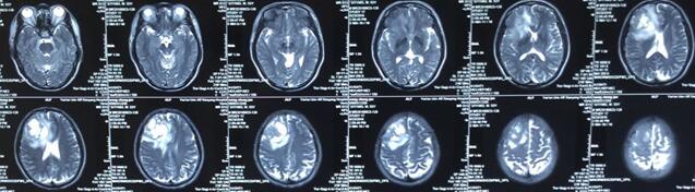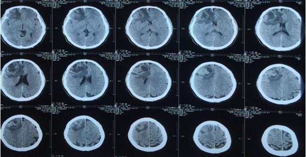 患者王某某,男,53歲,因“間斷頭痛半月”入神經(jīng)內(nèi)科十二病區(qū),發(fā)現(xiàn)顱內(nèi)占位后轉(zhuǎn)入神經(jīng)外科。既往患者有肺Ca病史,于一年前行手術(shù)治療。頭顱影像學(xué)診斷膠質(zhì)瘤?轉(zhuǎn)移瘤待排。2016年6月29日在3.0T磁共振定位后,劉增強副主任與其團隊為患者實施了立體定向腦內(nèi)病變活檢術(shù),此患者病灶為囊實性,手術(shù)難度較大,而一旦囊液流失則會發(fā)生腦組織漂移,導(dǎo)致靶點移位,因此手術(shù)計劃制定尤為重要,入顱點為右額部,穿刺后首先達到腫瘤實性部分,獲取病灶標本后,抽出部分囊液以緩解患者高顱壓癥狀,經(jīng)過精細的手術(shù)操作,最終成功獲取腫瘤標本,并且抽出約20ml腫瘤液,患者情況穩(wěn)定,術(shù)后兩小時即下床活動。