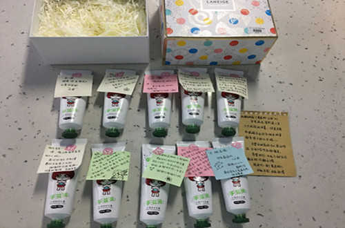 出院后,她還送來了一份小禮物,精致的盒子里鋪滿了和她一樣明亮的拉菲草,整整齊齊擺了一盒可愛的護手霜,每個護手霜上都貼了小小的便利貼,表達了她對照顧過她的每一個醫(yī)護的感謝,張浩,趙云軒,王雪利,姚佳妮,將雨晴,吳甜麗,李苑,王瑤,張強強、賈軍輝等可以準確到每一個人的名字,甚至是助理護士,說實話我是有點驚訝的。而同時對于把洗手當作家常便飯的醫(yī)護們來說,這份細心和貼心倒是最好的禮物了,讓每個人在工作中時刻緊繃著的弦松了些許下來,心和3月的溫度一樣暖,原來職責和價值是可以共存的。