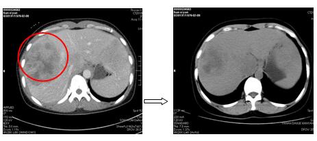 圖2. 肺癌伴多發(fā)轉(zhuǎn)移患者,化療后肺、心包、肝臟病灶明顯縮小