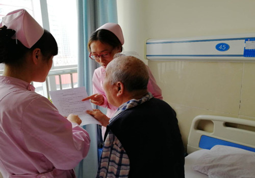 該患者已有84歲高齡,于2018年4月9日急診來院,反復(fù)胸悶、心悸五年,加重3小時。以“冠狀動脈粥樣硬化性心臟病”收住入院?!毙碾妶D示:陣發(fā)性房顫伴R-R間期,建議植入永久性起搏器。當(dāng)時患者及家屬心情低落,拒絕行起搏器治療。4月11日凌晨2點,值班護(hù)士閆珍珍發(fā)現(xiàn)患者心電圖有異常,隨后出現(xiàn)陣發(fā)性暈厥,值班醫(yī)生陳磊在萬分緊急的情況下征得家屬同意,立即給予安裝臨時起搏器。由于該患者年事已高,聽力不好,溝通起來特別困難,所以每次主管護(hù)士陳靜都是趴在患者耳邊溝通,耐心給患者講解起搏器的作用,主管醫(yī)生張樹遠(yuǎn)也向家屬講解了起搏器的好處,在醫(yī)護(hù)團(tuán)隊的共同努力下,終于在4月13日的早晨,患者接受了安裝起搏器手術(shù),術(shù)后患者狀態(tài)良好,從搶救室轉(zhuǎn)到了普通病房。每天的床旁交接班,主管護(hù)士李春妮親切的問道:“昨晚休息怎么樣?”“早飯吃了嗎?”“藥吃了嗎?”這位患者都會開心的像個孩子一樣豎起大拇指說,好,都好!