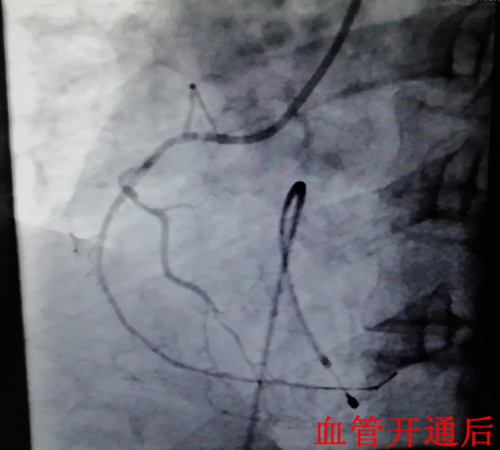 在一陣有效地?fù)尵戎?,患者在氣管插管、呼吸機(jī)輔助呼吸下,先行心臟臨時(shí)起搏器置入,后行左右冠狀動(dòng)脈造影,造影顯示:右冠狀動(dòng)脈呈鼠尾狀,開(kāi)口5mm處100%閉塞,旋支血管中遠(yuǎn)段60—99%彌漫狹窄病變。手術(shù)者立即開(kāi)通右冠狀動(dòng)脈,盡管患者在手術(shù)過(guò)程中不斷出現(xiàn)室速室顫,血壓下降,但隨著右冠狀動(dòng)脈遠(yuǎn)端血流恢復(fù),患者終于生命體征趨于平穩(wěn),安全返回監(jiān)護(hù)室繼續(xù)下一步治療。