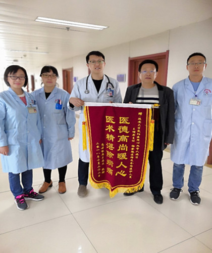 籠罩了一夜的寒氣還未徹底消散,可王大爺?shù)男那閰s似過那烈日炎炎。今天是70歲的王大爺出院的日子,他一大早就已經(jīng)收拾好東西,在子女的陪伴下準(zhǔn)備向我們醫(yī)護(hù)人員告別。原來王大爺患高血壓、糖尿病多年,一周前因反復(fù)胸悶、氣短不適于外院就診,其間行冠狀動脈造影顯示多支血管嚴(yán)重狹窄,患者病情已達(dá)到介入治療指征,本是看到希望的時(shí)候,可卻因不明原因的眼底出血未能進(jìn)一步行PCI治療,這使得王大爺及其子女燃起的希望又回到了原點(diǎn),經(jīng)保守治療后王大爺癥狀緩解出院。但出院后他胸悶、氣短不適仍反復(fù)發(fā)作,日?;顒訃?yán)重受限,生活質(zhì)量明顯下降??嘤跓o奈的王大爺?shù)膬鹤涌吹竭@樣的情景,心中很是難受,便抱著一絲希望前來我院住院。王明新主任查房了解患者病情,經(jīng)詳細(xì)問診、查體、閱讀輔助檢查結(jié)果及全科醫(yī)師討論后認(rèn)為:患者當(dāng)前診斷明確,已具備手術(shù)指征,鑒于患者當(dāng)前多支血管嚴(yán)重病變,評估風(fēng)險(xiǎn)后決定先干預(yù)LAD中段,半月后再處理其他狹窄冠脈,請眼科醫(yī)師會診明確眼底出血原因,同時(shí)積極完善相關(guān)術(shù)前準(zhǔn)備?;颊呒凹覍俦硎就獠⑴浜?。16日上午,在導(dǎo)管室王大爺成功于LAD中段植入支架1枚,術(shù)后第二日,患者癥狀顯著緩解,王大爺高興的講道“這么久了,我終于敢走幾圈、能做深呼吸了!”,予對癥治療5日后康復(fù)出院。王大爺及其子女送來錦旗,感激之情難以言表,攥著王主任和楊醫(yī)生的手久久不肯放下,在場人員無不為之動容。