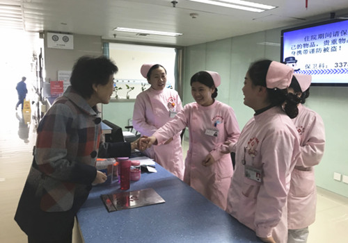 11月13日初冬的天空下,陽光顯得彌足珍貴,術(shù)后經(jīng)過醫(yī)生、護(hù)士、患者、家屬的齊心努力,劉阿姨邁著愈漸康復(fù)的步伐,收拾陽光普照的心情與在崗的每一位醫(yī)生、護(hù)士道別,濕潤了眼眶的她對醫(yī)生護(hù)士說:“真心謝謝咱們的醫(yī)生護(hù)士,沒有你們,我已經(jīng)被埋了!”??粗鴮懼懊钍只卮骸彼膫€(gè)大字的牌匾與大紅的感謝信,我們?nèi)w醫(yī)護(hù)人員還是那句樸實(shí)的話:“我們所做的一切都是我們的本職工作,謝謝你的信任與配合,祝您早日康復(fù)”!