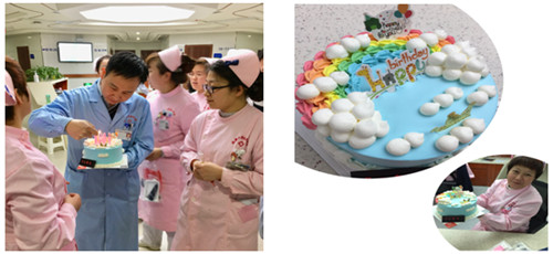 伴隨著生日歌聲,主任護(hù)士長(zhǎng)帶領(lǐng)科室人員為張奶奶送上精美的蛋糕和真摯的祝福。“張奶奶,祝您生日快樂(lè)!早日康復(fù)!健康長(zhǎng)壽!”這突如其來(lái)的驚喜使張奶奶激動(dòng)不已,她眼中閃爍著淚花,顫抖的雙手緊握著護(hù)士長(zhǎng)的手,不停的說(shuō)著:謝謝,謝謝你們。楊主任技術(shù)高,我恢復(fù)的這么好,你們還像我的家人一樣這么貼心地給我過(guò)生日,讓我開心。有你們這樣的醫(yī)生、護(hù)士,我心里怎么能不感到踏實(shí)呢!
