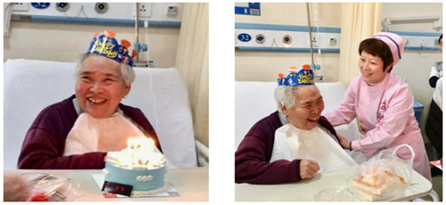大家一起為張奶奶唱生日歌,切蛋糕,吹蠟燭,合影……一時(shí)間,溫馨活躍的氣氛溢滿病房。在醫(yī)護(hù)人員的陪伴下,張奶奶度過(guò)了一個(gè)難忘的生日 。