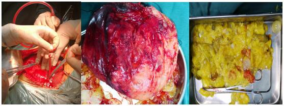 手術(shù)中 手術(shù)取出外囊 囊腫內(nèi)容物