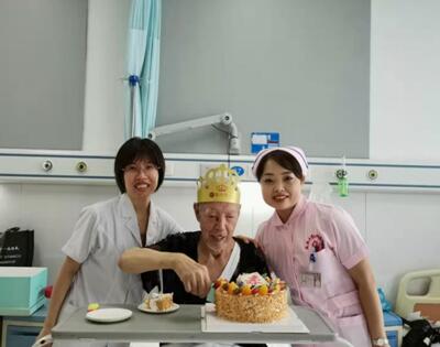 2019年8月21上午,忙碌的我們和平時一樣,有條不紊的進(jìn)行著工作,但是我們心照不宣,準(zhǔn)備給病房的一位老爺爺舉行一個溫馨的生日驚喜。在老人辦理住院的時候,細(xì)心的主管醫(yī)生李飛龍就發(fā)現(xiàn)老人的生日就在本月的21號,老人因?yàn)樯眢w原因,每年要住幾次醫(yī)院,他是我們眼中的“和藹慈祥老爺爺”,同時我們也在老人心中勝似親人。在郝鋒利主任及劉娜護(hù)士長的安排下,所有在班的醫(yī)護(hù)人員為老人送來了生日驚喜。當(dāng)主任和護(hù)士長端著蛋糕,所有醫(yī)護(hù)人員為老人齊唱起生日快樂歌,老人開心的像個孩子一樣,拍手表示感謝,并在大家的祝福聲中許下生日愿望。在那一刻,我們感受到了老人的激動,也體會到我們內(nèi)心的那份感動,趁著這個美好的氛圍,在場的醫(yī)護(hù)人員紛紛和老人合影留念。留住的是老人開心的笑臉,科室的祥和,醫(yī)患的和諧。引用一句話“生活需要儀式感,普通平淡的日子因?yàn)楸毁x予了愛,感恩,紀(jì)念,才能顯得彌足珍貴”。同樣,我們的工作亦是如此,正因?yàn)槊總€普通的生命,需要我們?nèi)ケM自己所能,去全力救助,所以每個生命都如此珍貴,如此的有意義。