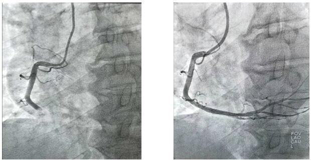 2019年10月1日凌晨1點左右,興平市人民醫(yī)院將一位急性心梗病人送至我院,患者胸痛5小時并伴有大汗,心電圖顯示ST段呈弓背向上型抬高,出現(xiàn)寬而深的Q波和T波倒置。心肌酶及肌鈣蛋白升高。心血管病院值班二線立即通知導(dǎo)管室值班醫(yī)生?!皩?dǎo)管室已啟動”,一場與死神的博弈即將開始,醫(yī)護(hù)人員“飛毛腿”式趕到導(dǎo)管室,護(hù)士開始了準(zhǔn)備工作,“液體已配好、除顫儀處于備用狀態(tài)、急救藥品準(zhǔn)備完畢”的同時,隨著技師“趕快帶病人”。醫(yī)護(hù)人員穿上近30斤重的鉛衣、洗手、戴口罩,一場沒有硝煙的戰(zhàn)爭正式開始了,消毒、穿刺、造影.....手術(shù)緊張而有序的進(jìn)行著,經(jīng)過一小時左右的奮力搶救,病人終于脫離了危險。安全送至CCU后,醫(yī)護(hù)人員此時已經(jīng)筋疲力盡,身上的衣服也已經(jīng)濕透,但大家還是會共同探討手術(shù)的過程。