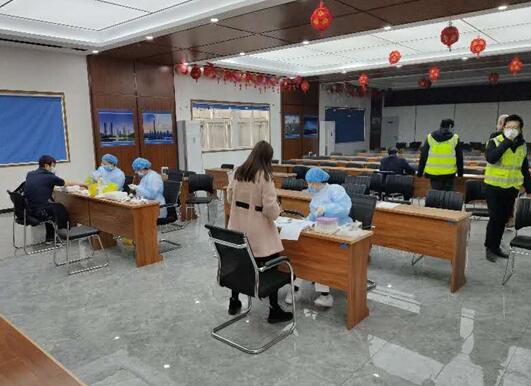 為做好本次體檢活動,院領(lǐng)導(dǎo)高度重視,為出行醫(yī)護(hù)人員配備二級防護(hù)著裝,確保特殊時期的“特殊體檢”安全順利開展。工作前,嚴(yán)格按照工作流程,對參加體檢的醫(yī)護(hù)人員進(jìn)行專業(yè)技術(shù)、體檢流程、流行病學(xué)史調(diào)查、個人防護(hù)等知識培訓(xùn),并進(jìn)行綜合演練。到達(dá)目的地后,體檢科護(hù)士長吳亞婭組織人員分類擺放止血帶、棉簽、碘伏、醫(yī)用手套、采血針、采血試管等,統(tǒng)籌安排分組,崗位到個人。物資準(zhǔn)備齊全,護(hù)理人員全副武裝,迅速到位,規(guī)范操作,一人一針一管一消毒,防止交叉感染,杜絕反復(fù)穿刺,力爭一針見血?!罢埓蠹蚁喔粢幻着抨?,先到這邊進(jìn)行預(yù)檢?!痹卺t(yī)護(hù)人員的指引下,現(xiàn)場企業(yè)返工人員依次排隊進(jìn)行采血,醫(yī)護(hù)人員在每個環(huán)節(jié)和步驟嚴(yán)把健康篩查關(guān)口,做好體溫檢測、詢問新冠肺炎有關(guān)流行病學(xué)史并對照標(biāo)準(zhǔn)指導(dǎo)企業(yè)員工填寫信息登記表,同時還科普自我防護(hù)健康知識。通過精心準(zhǔn)備和安排,整個體檢流程十分緊湊,大大減少了人們的逗留時間,降低了健康風(fēng)險。在這種高負(fù)荷運轉(zhuǎn)的工作強度下,大家默默堅持著,腰痛、頭頸痛,活動一下關(guān)節(jié),眼睛疲乏了,閉目緩解后繼續(xù)干,其中一天早上九點到下午兩點輾轉(zhuǎn)了四個地方,四名護(hù)士完成了將近300名復(fù)工人員的血樣標(biāo)本采集,立即送往檢驗科進(jìn)行核酸檢測,直到下午三點多才吃上午飯。貼心的舉動,嫻熟的技術(shù),讓企業(yè)員工贊不絕口。