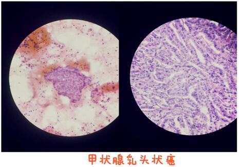 近日,有門診病人一例,無明顯臨床癥狀,體檢時(shí)甲狀腺彩超提示:甲狀腺單發(fā)結(jié)節(jié)。經(jīng)血液內(nèi)分泌科王芳主任在B超引導(dǎo)下行細(xì)針穿刺取得細(xì)胞學(xué)標(biāo)本。將我科診斷為"甲狀腺右葉結(jié)節(jié)穿刺涂片"惡性腫瘤,甲狀腺乳頭狀癌。半月后并行手術(shù)治療。手術(shù)標(biāo)本病理診斷"甲狀腺右葉"甲狀腺乳頭狀癌。因此,細(xì)針穿刺不僅創(chuàng)傷小,而且可以早期、快速的為臨床醫(yī)師和腫瘤科醫(yī)師提供有價(jià)值的信息,幫助醫(yī)師正確地評(píng)估患者預(yù)后,制定最佳的治療方案。